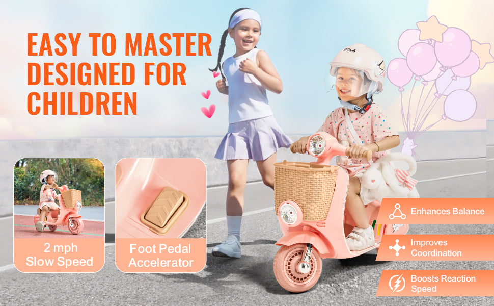 Bought this for my son's 3rd bday and he loved it. He figured out how to ride it in like 5 minutes after I assembled. The speed is perfect, not too fast but he still feels like hes zooming and also that lights are bright and look so cool at dusk.